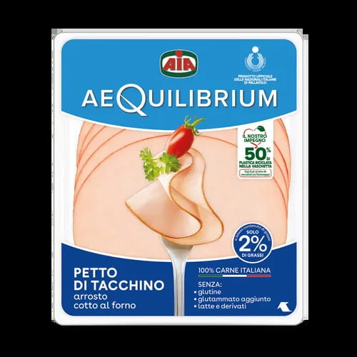AIA AeQuilibrium&Me Gekochter Pute aus 100% italienischem Fleisch ist in einer praktischen 60-Gramm-Packung "just for you" erhältlich: ideal, um sich tagsüber einen Moment Zeit für sich selbst zu nehmen und jede Mahlzeit mit Einfachheit und Geschmack zu bereichern.