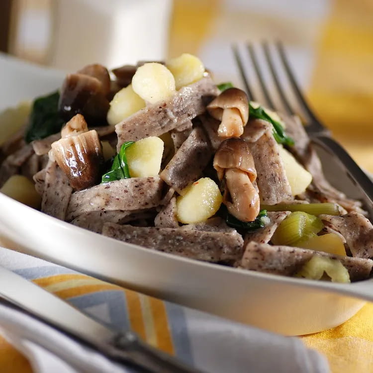 Kochen Sie die Luganega Paesana AIA mit einem Faden Öl bei mittlerer Hitze. Bringen Sie es zum Ende des Kochens, indem Sie das Produkt oft umdrehen.