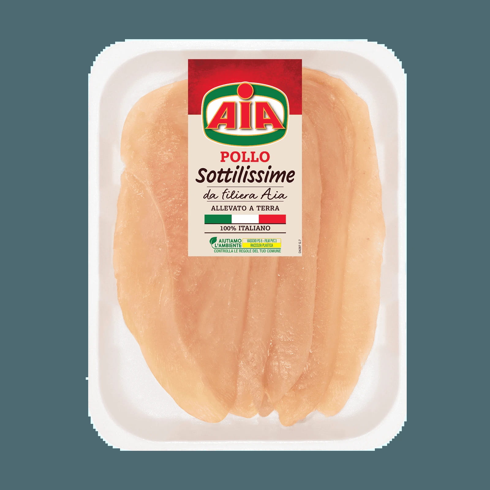 Dünne Scheiben von Hühnerbrust. Sehr weich und schnell zu kochen.