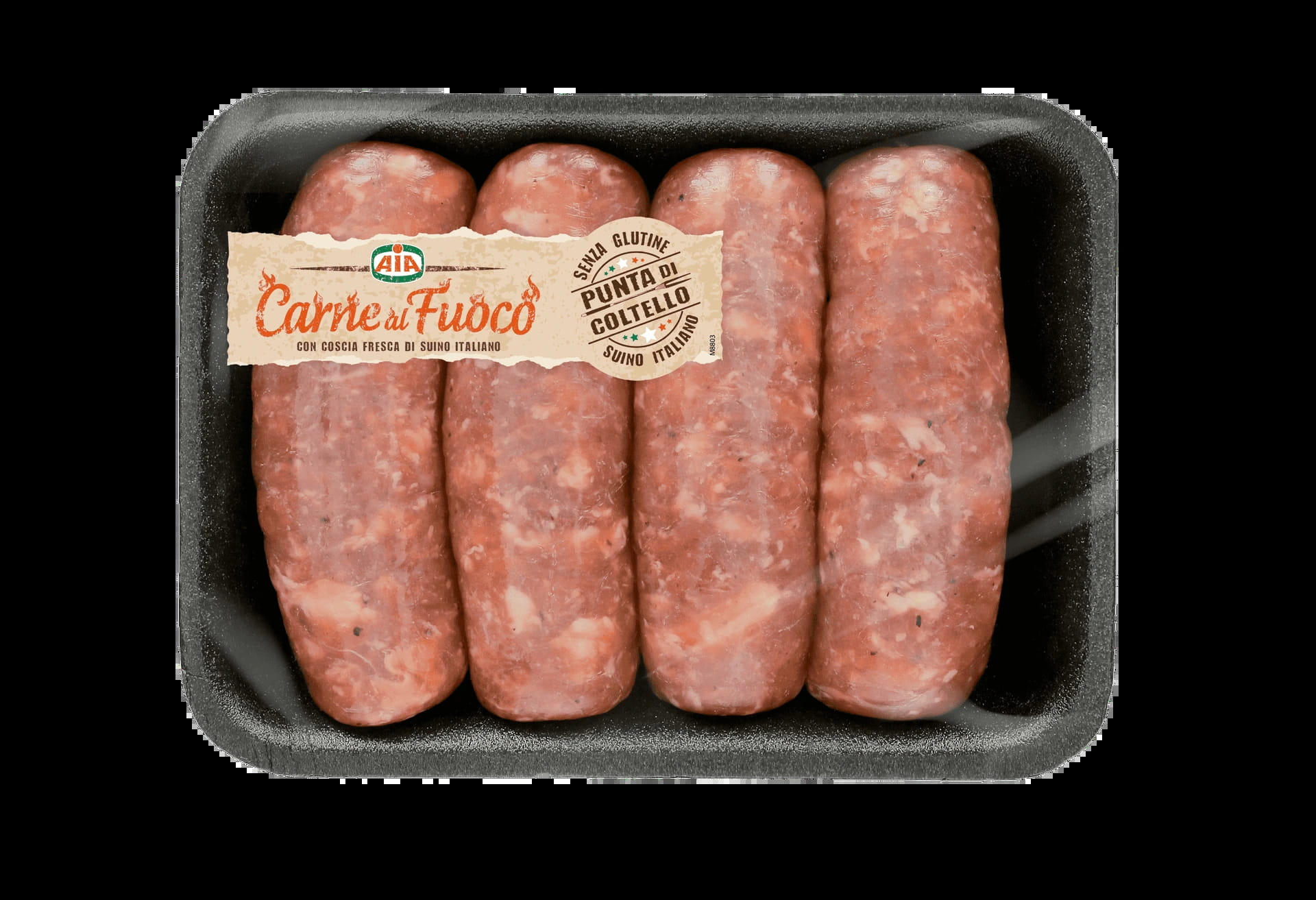 Legen Sie die Wurst mit Messerspitze AIA in eine Auflaufform mit etwas Öl und stellen Sie sie in den Ofen bei 220°C. Backen Sie für 15 Minuten, achten Sie darauf, das Produkt oft umzudrehen.