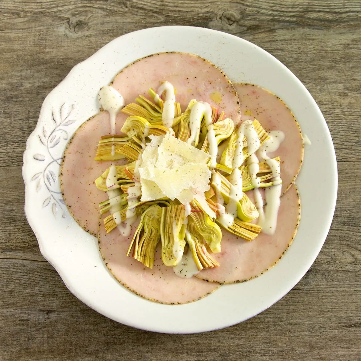 Es handelt sich um ein ungewöhnliches Carpaccio, das die Leichtigkeit des traditionellen Rezepts bewahrt und durch die rohen Artischocken eine kreative und knusprige Note hinzufügt. Perfekt für einen Sommerlunch, vielleicht am Meer, aber auch ideal zum Servieren an Freunde während eines Buffetdinners, auf der Terrasse oder im Garten, das Rezept für Artischocken und Parmesansauce auf einem Bett von aeQuilibrium mit schwarzem Pfeffer wird Sie begeistern.