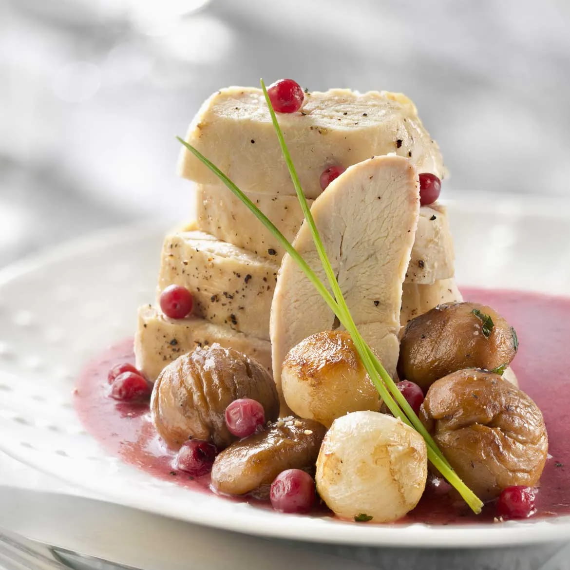 Für einen Winterabend braucht man ein Abendessen, das diesen Namen verdient: Mit dem gebratenen Kapaun mit Kastanien können Sie nichts falsch machen. Dieses Gericht, mit einer sehr eleganten Präsentation, lässt Sie sich wie echte Köche fühlen, ohne die Gefahr, Fehler zu machen.