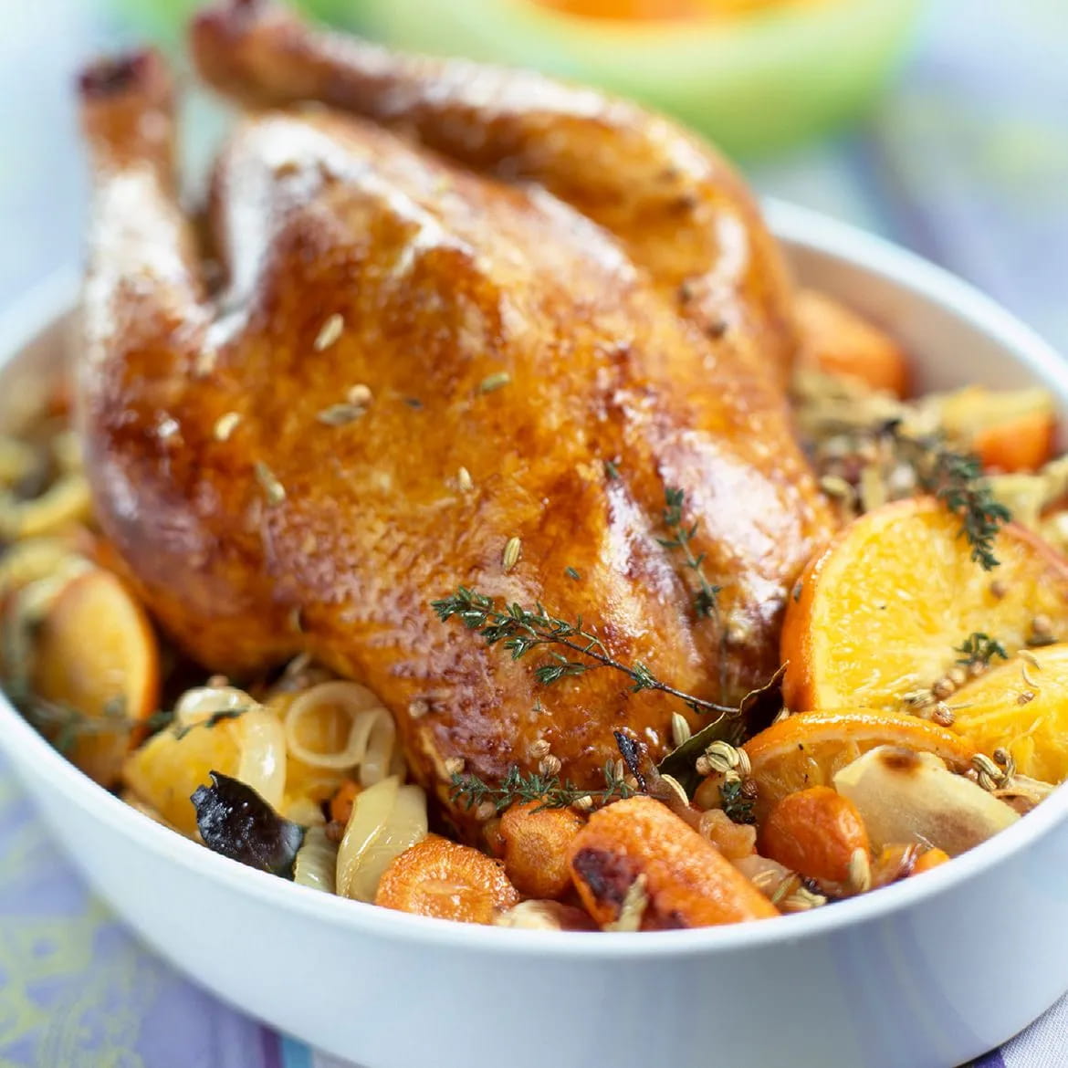 Um ein saftiges und weiches Hähnchen im Ofen zu bekommen, durchstechen Sie die Haut niemals mit Gabeln oder Spießen. Behandeln Sie das Hähnchen vorsichtig, auch beim Kochen, um die Haut intakt zu lassen, die knusprig und lecker wird. Wenn Sie ein noch knusprigeres Brathähnchen möchten, stellen Sie es für die letzten 5 Minuten des Kochens auf die Grillfunktion.
