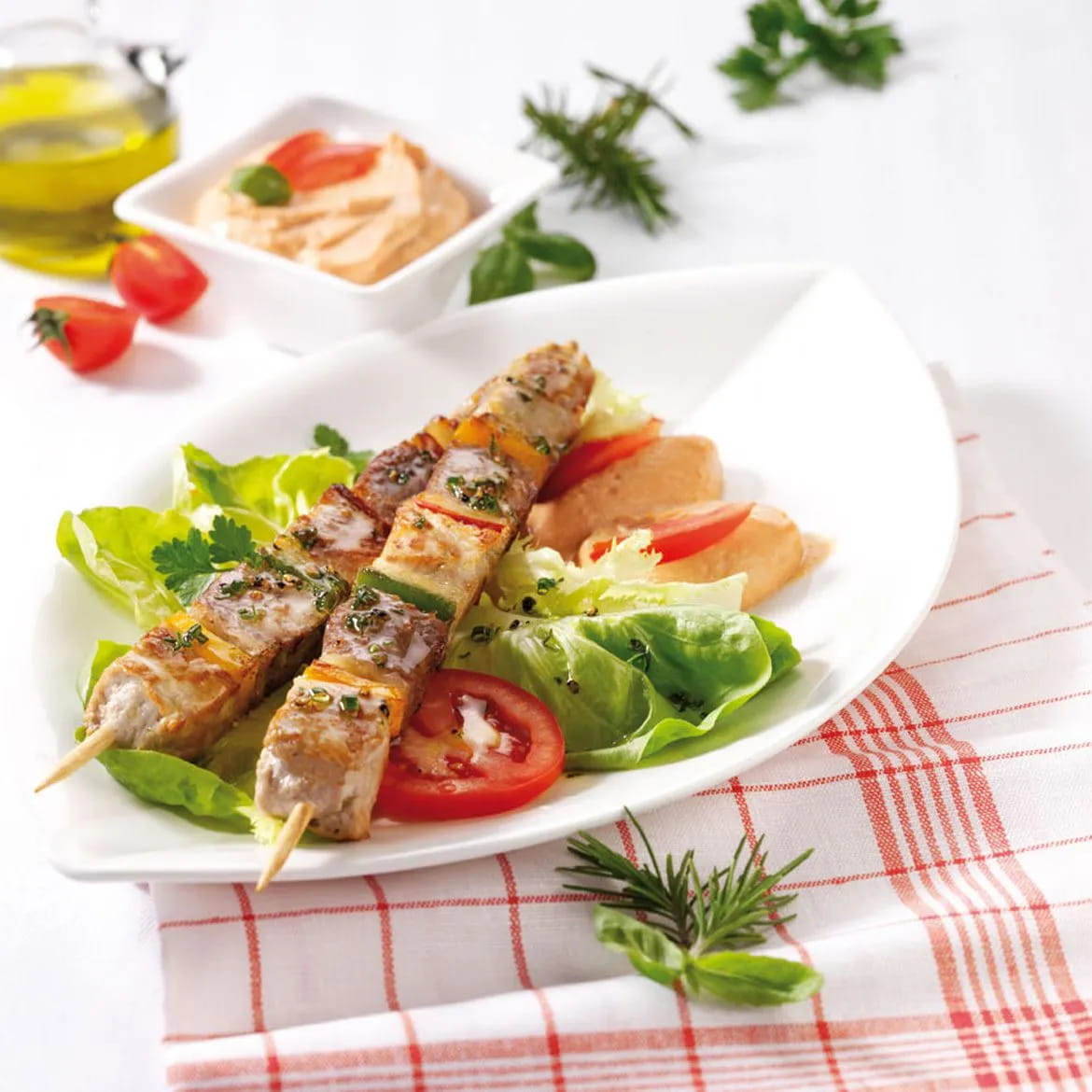 Braten Sie die rustikalen Spieße von AIA in einer Pfanne mit etwas extra nativem Olivenöl oder auf dem Grill und servieren Sie sie heiß mit der Tomatenmayonnaise. Servieren Sie den Salat und geröstetes Brot und Ihre leckeren Spieße werden köstlich sein.