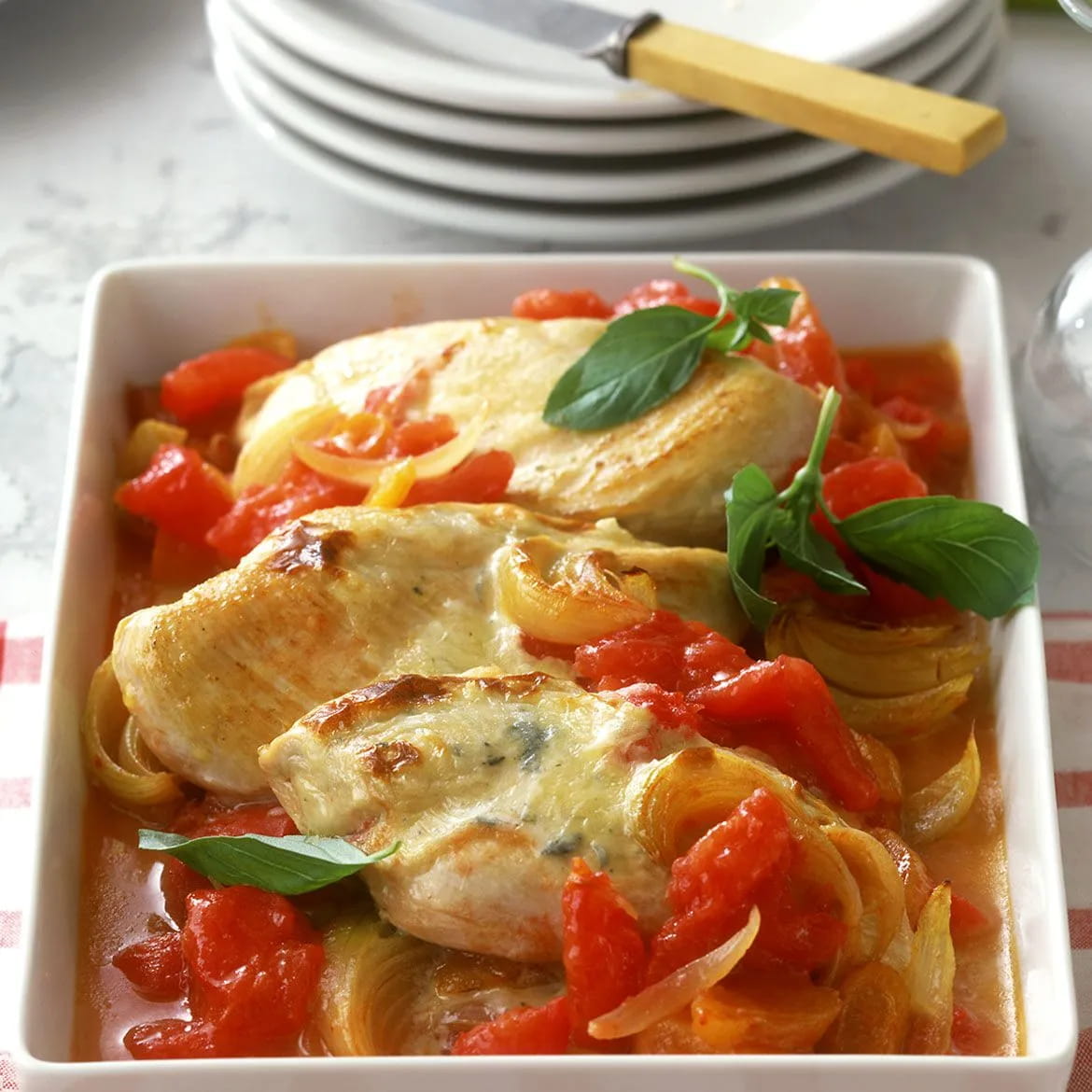 - Mediterraner Truthahn mit Tomaten und Basilikum