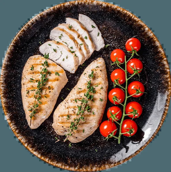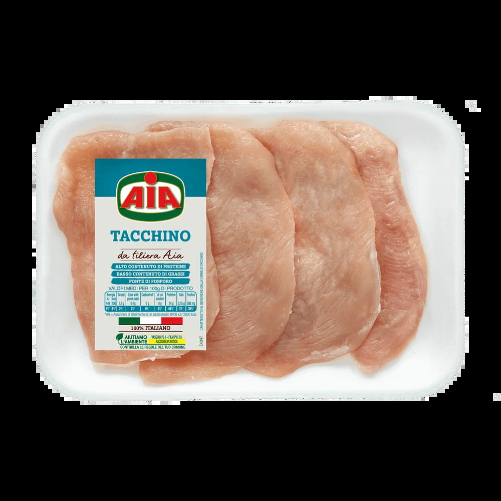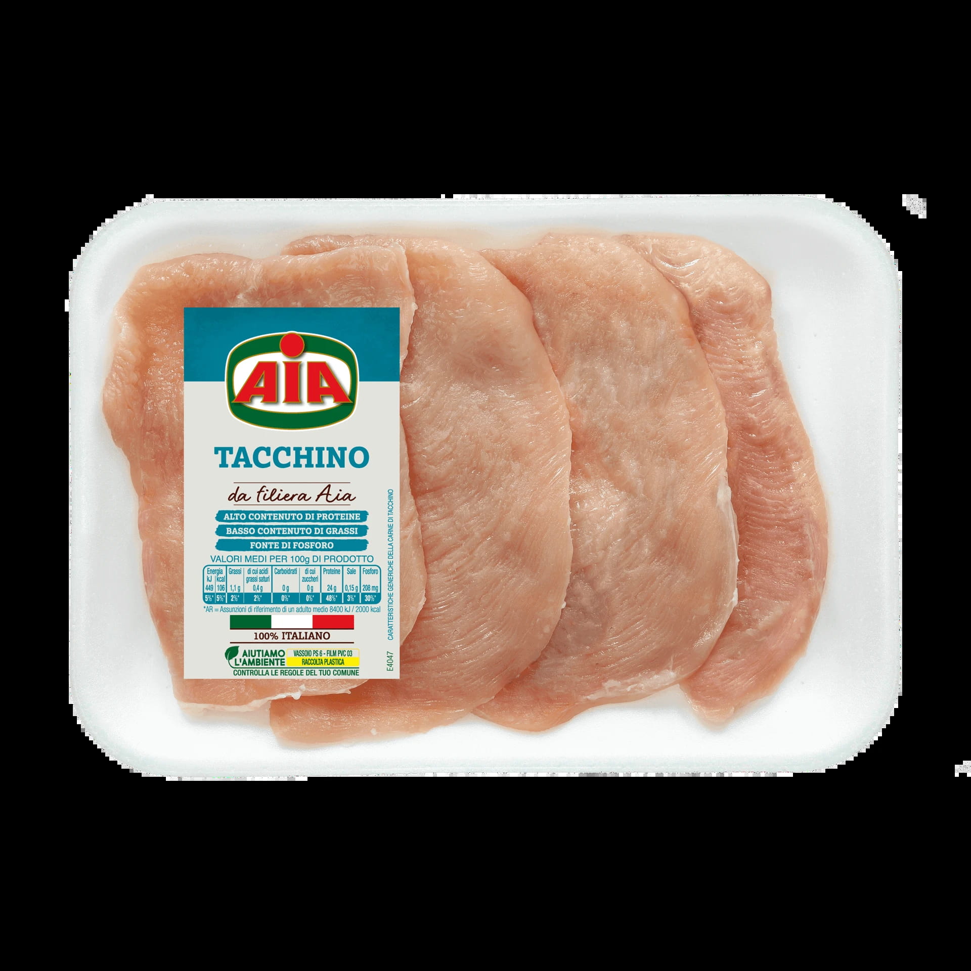 Slices of turkey thigh, ideal for grilling or pan frying. Accompanied with arugula and balsamic vinegar, they represent an excellent alternative, appetizing and delicate, to the classic veal. Alternatively, cook them like this: