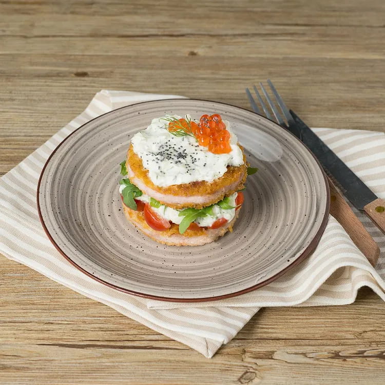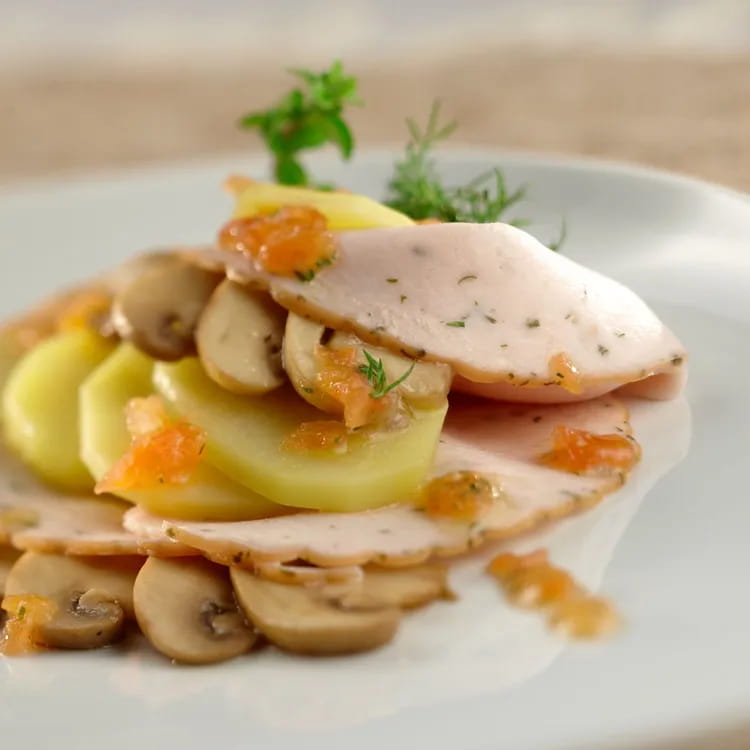 Compose the layers with a slice of tomato, mozzarella and aeQuilibrium turkey, alternating them with leaves of fresh salad.