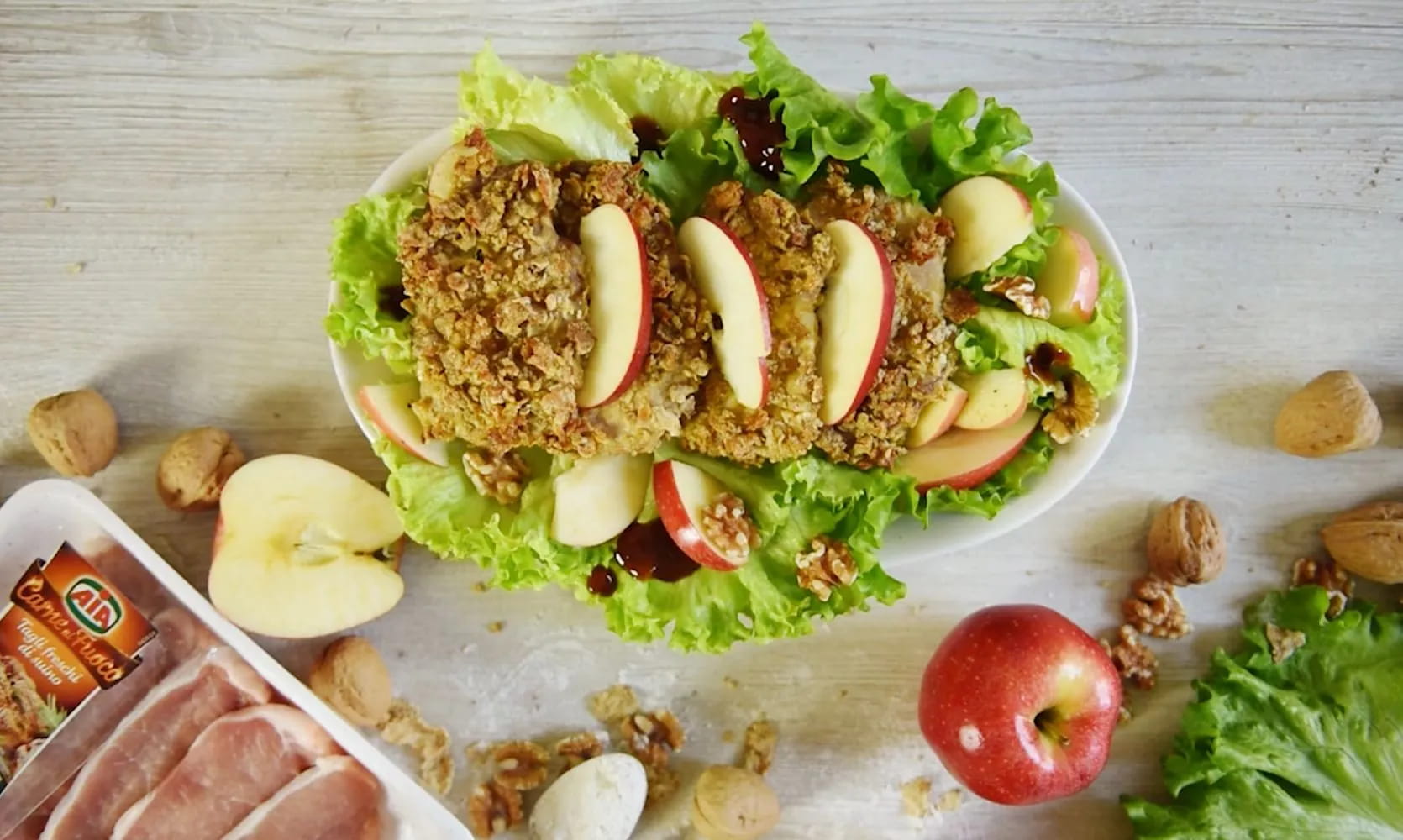 In a bowl, break the eggs and beat them, adding a pinch of salt and pepper. Crumble the corn flakes coarsely and pass the AIA pork loin slices first in the flour, then in the beaten egg and bread them in the corn flakes. Arrange the cutlets on a baking tray lined with parchment paper, drizzle with a little extra virgin olive oil and bake at 180°C for 10 minutes.