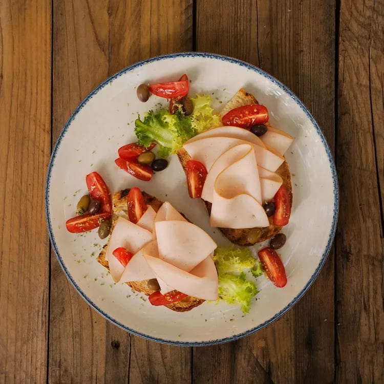 In this preparation, the slightly bitter taste of chicory is lightened by the sweetness of the stracciatella and the savoriness of the Roasted Turkey Breast aeQuilibrium AIA, while the chili pepper gives a slightly spicy note to everything. The play of textures makes this preparation even more irresistible: from the crunchiness of the frisella and the ribs of the chicory to the softness of the Roasted Turkey Breast aeQuilibrium AIA and the stracciatella…you will definitely want seconds! The frisella, a product of the Apulian culinary tradition, brings back the flavors of Puglia, which we also find in the sautéed chicory and in the use of stracciatella.
