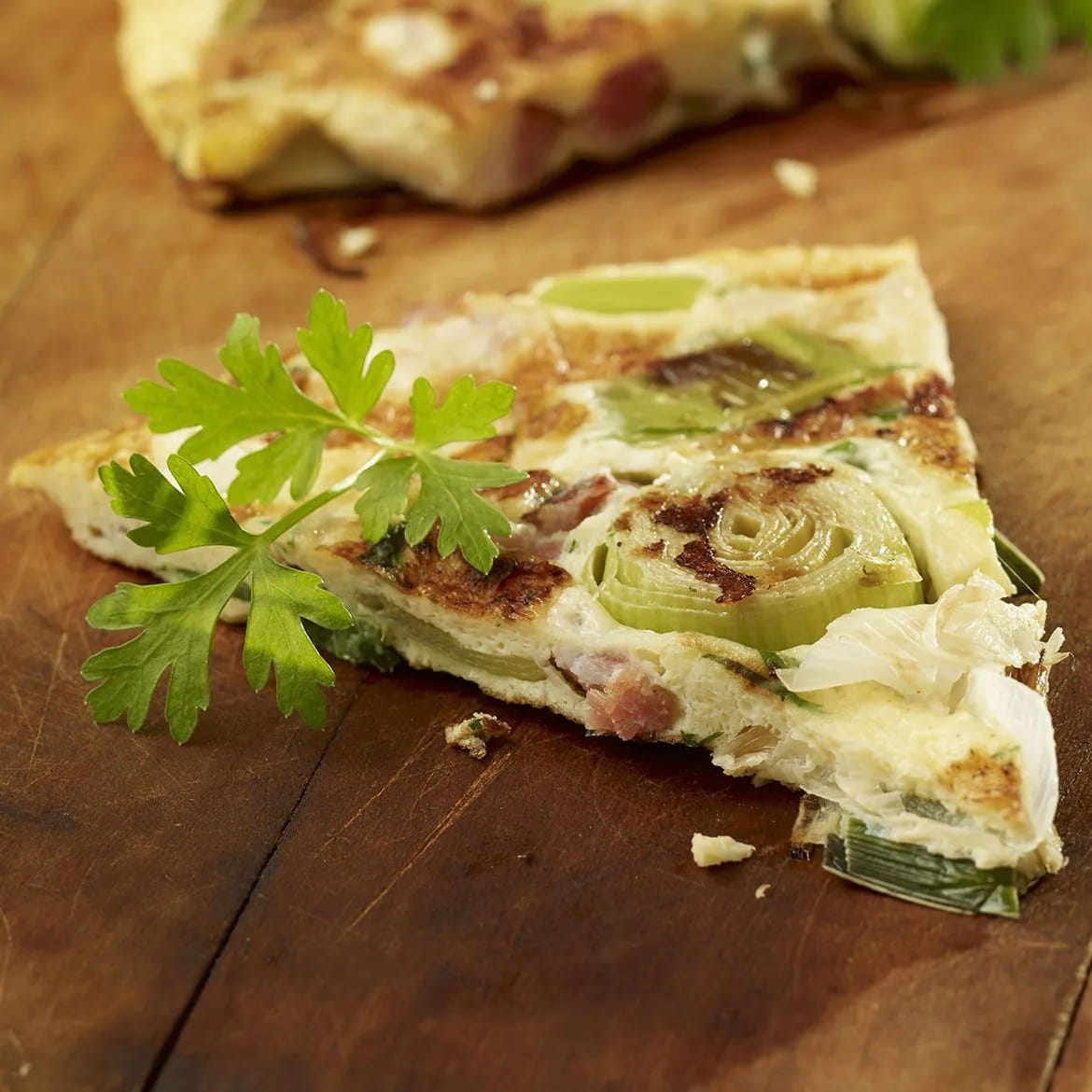 Leeks are very versatile in the kitchen and lend themselves very well to being put in the frittata. This leek and bacon frittata can also be prepared in the oven to be more practical and light.