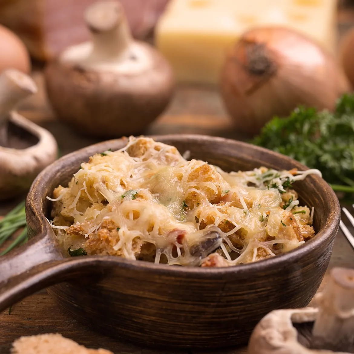 The two main ingredients are mushrooms and High Quality Cooked Ham AeQuilibrium AIA: this mix of flavors so perfectly harmonious, will make your soufflé a real gourmet dish, chef-proof.