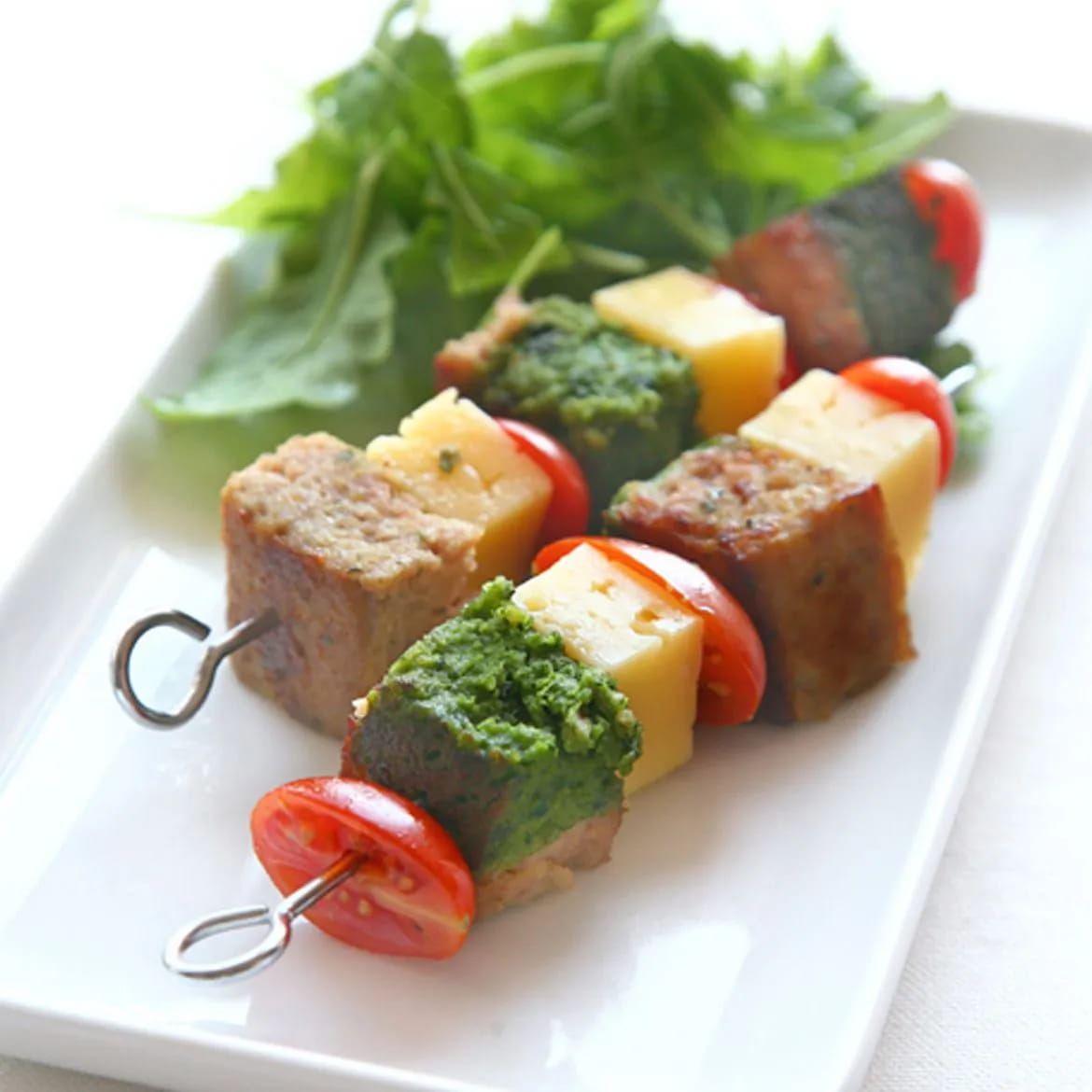 Once cooked, skewer them alternating with the cheese and cherry tomatoes.