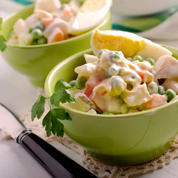 The Russian salad is a classic cold side dish that adapts well to both meat and fish dishes: it can be part of a tasty aperitif, be served at a cocktail party or figure among the dishes of a buffet dinner.