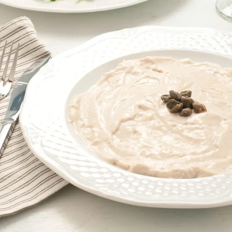 To prepare the tuna sauce, follow our procedure. Finally, put all the vegetables in a large bowl, season them with the tuna sauce and add the wedges of hard-boiled egg and sliced cucumbers as garnish.