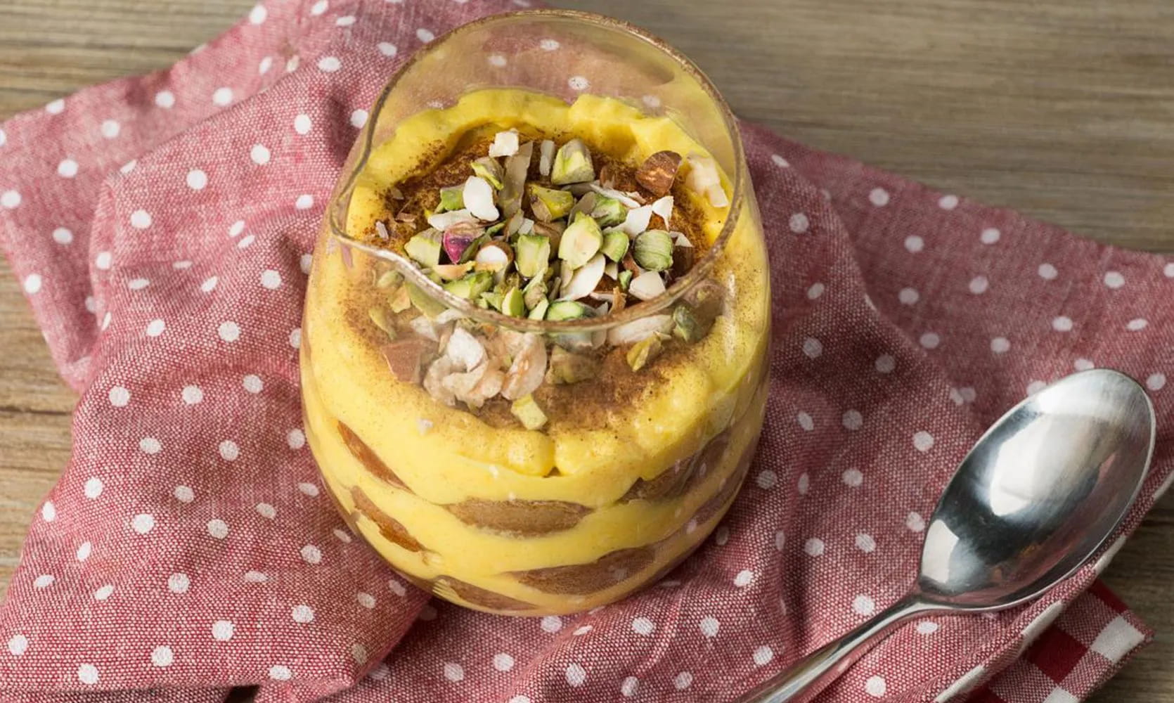 Here is the easy and complete recipe for tiramisu with custard and dried fruit!