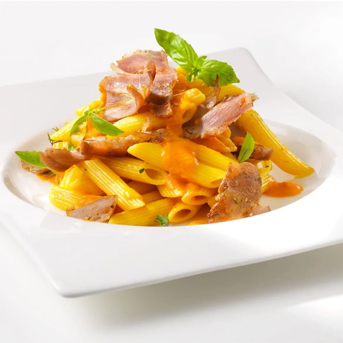 Have you ever thought of putting kebab meat in pasta? The spicy flavor of the chicken, in this case, together with a cream based on peppers will give your penne rigate a truly unique taste. We called them Turkish-style penne, but they could easily become an Italian family tradition.