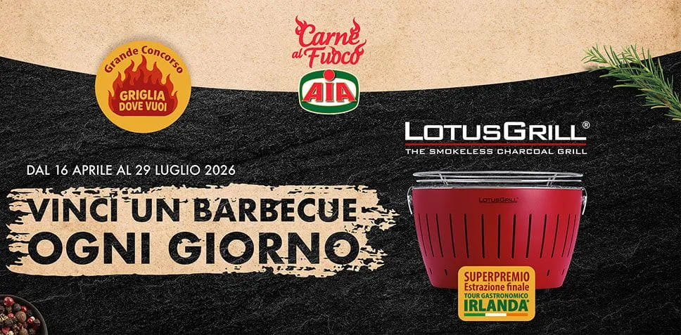 Acquista almeno due prodotti Carne al Fuoco AIA e prova a vincere un barbecue Lotus Grill e un Tour gastronomico dell’Irlanda.