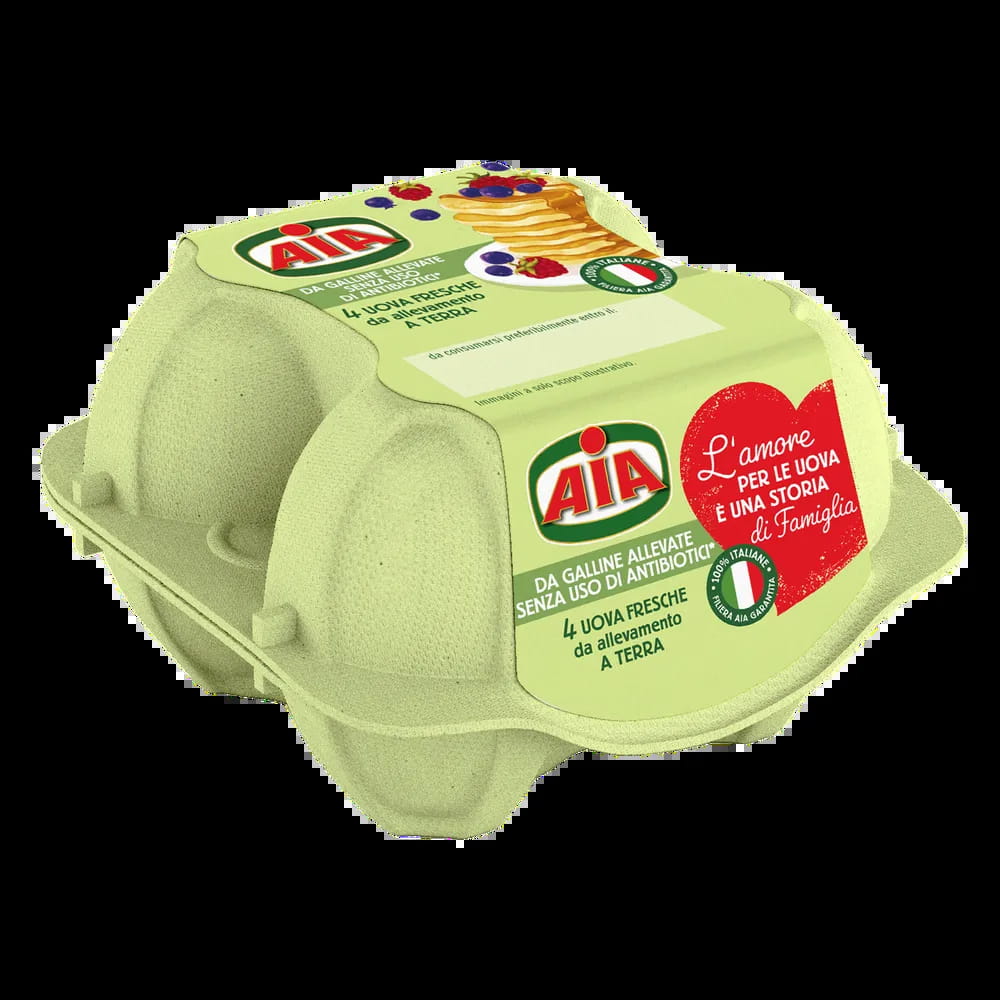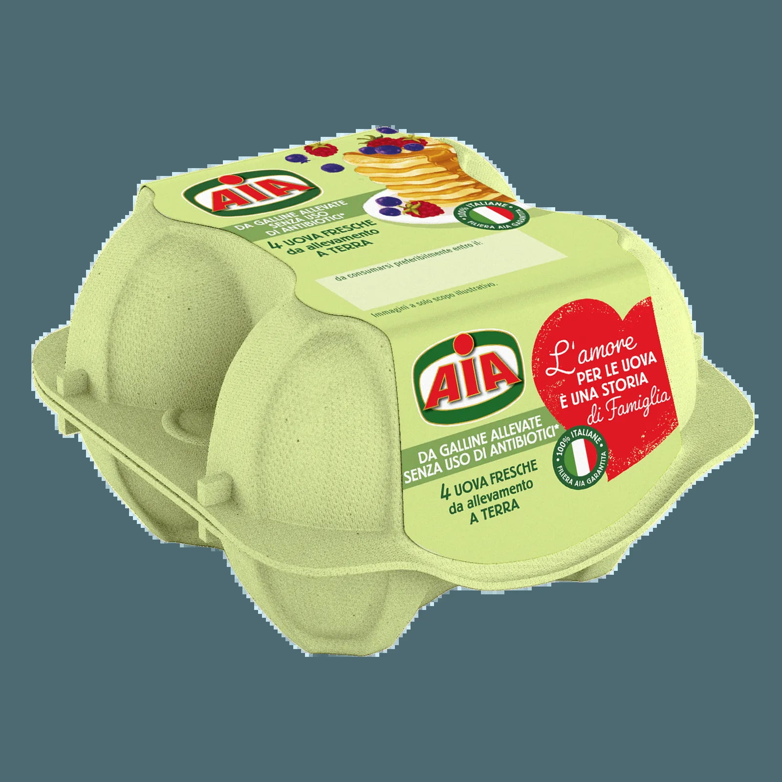 4 uova da galline allevate a terra, senza l'utilizzo di antibiotici.