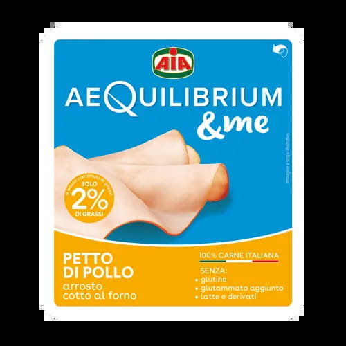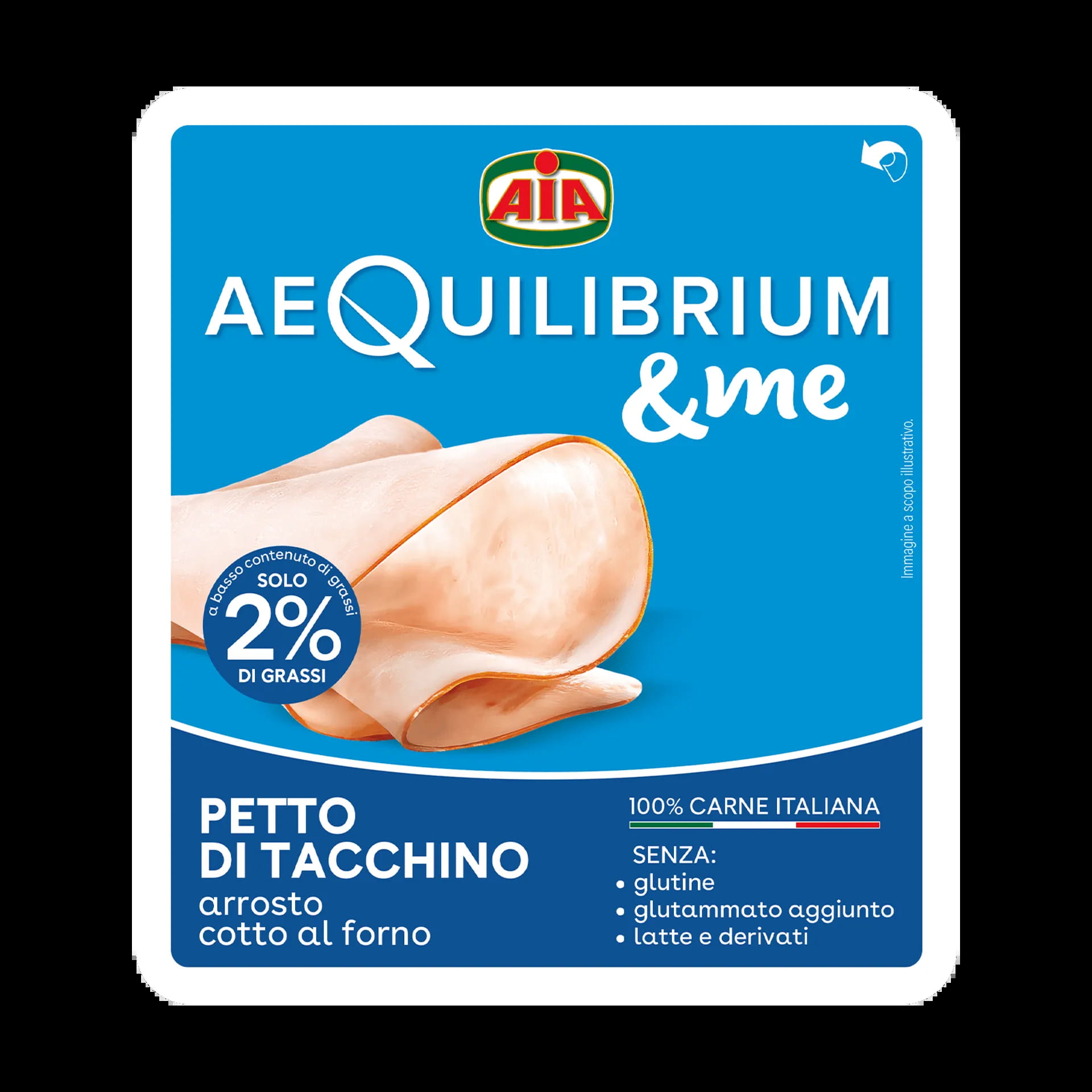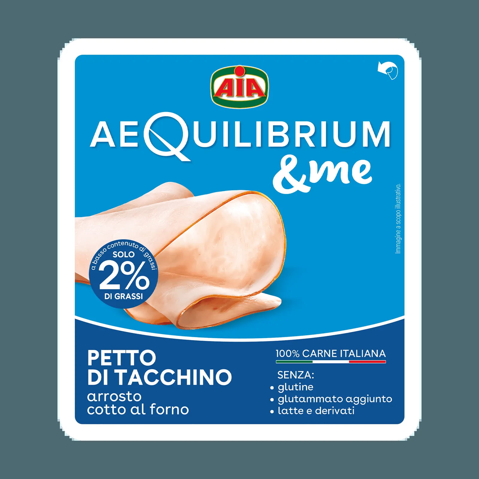 AIA AeQuilibrium&Me Petto di Tacchino, da da carne 100% italiana, è disponibile in un pratico pack da 60 grammi “giusto per te”: ideale per ritagliarsi un momento da dedicare a sé stessi durante la giornata arricchendo ogni pasto con semplicità e gusto.