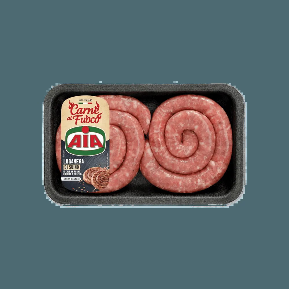 Salsiccia in formato luganega, arrotolata nel pratico vassoio, dal sapore delicato grazie all’equilibrio fra le componenti di grasso e magro. SENZA GLUTINE NÉ CONSERVANTI.