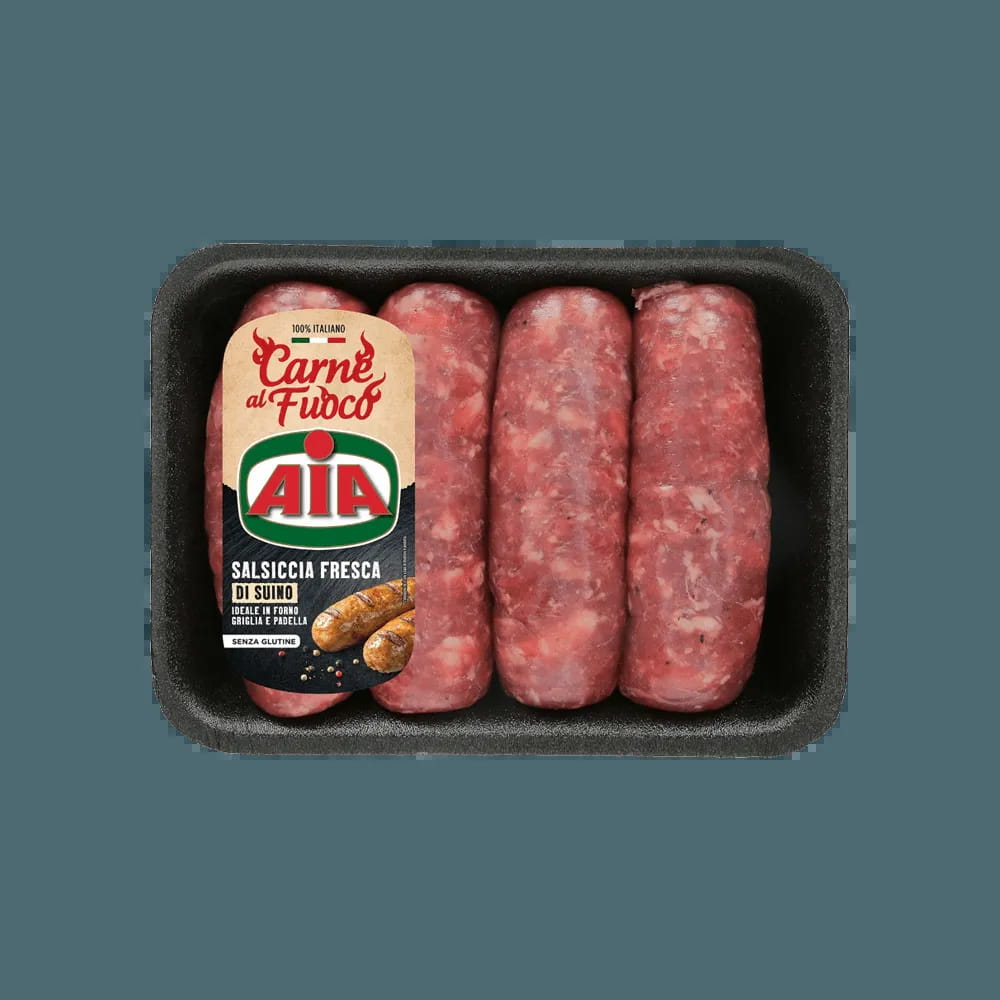 Ponete la Salsiccia Punta di Coltello AIA in una padella antiaderente con un filo d’olio a fuoco medio. Portatela a fine cottura, rigirando spesso il prodotto.