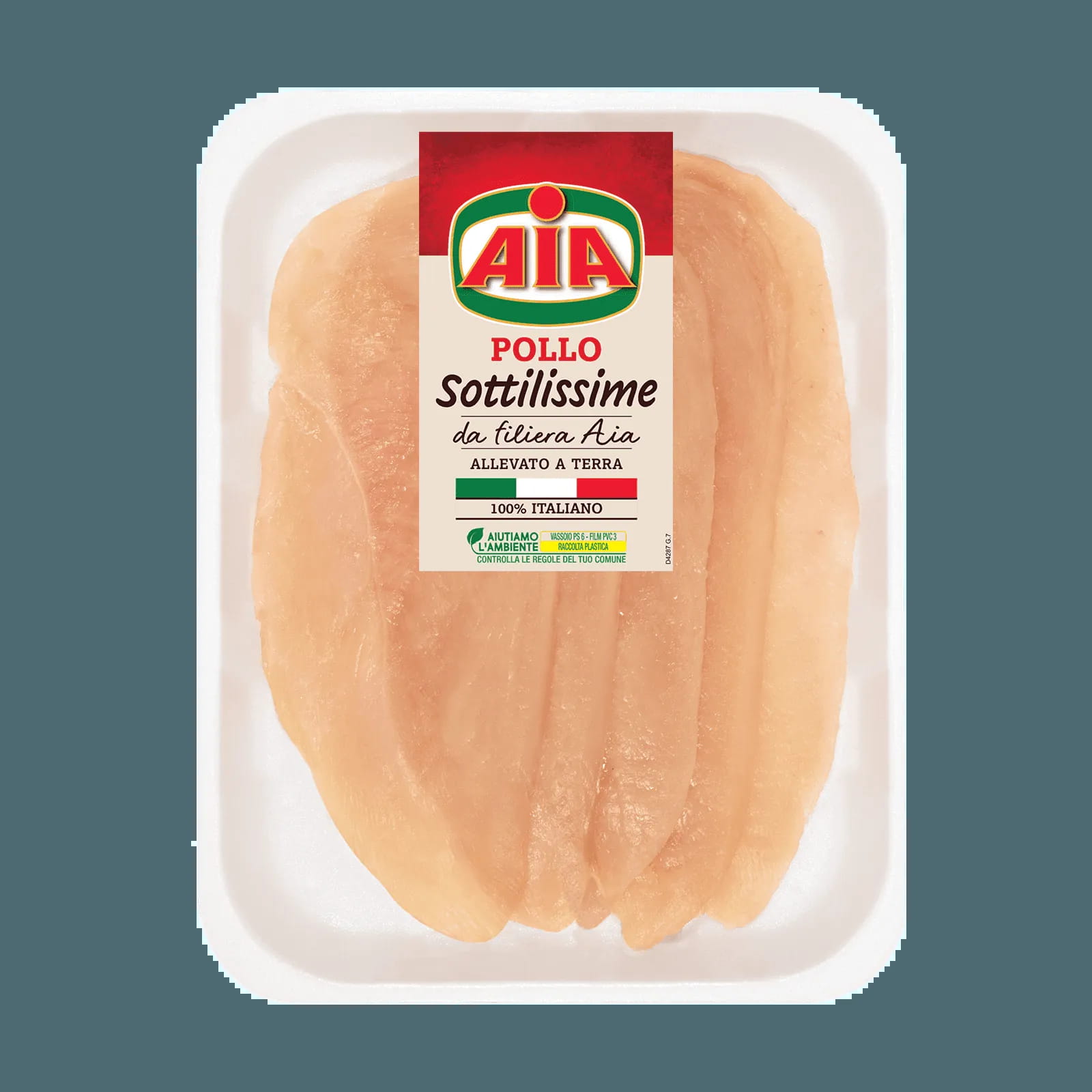 Sottili fette di petto di pollo. Morbidissime e velocissime da cuocere.