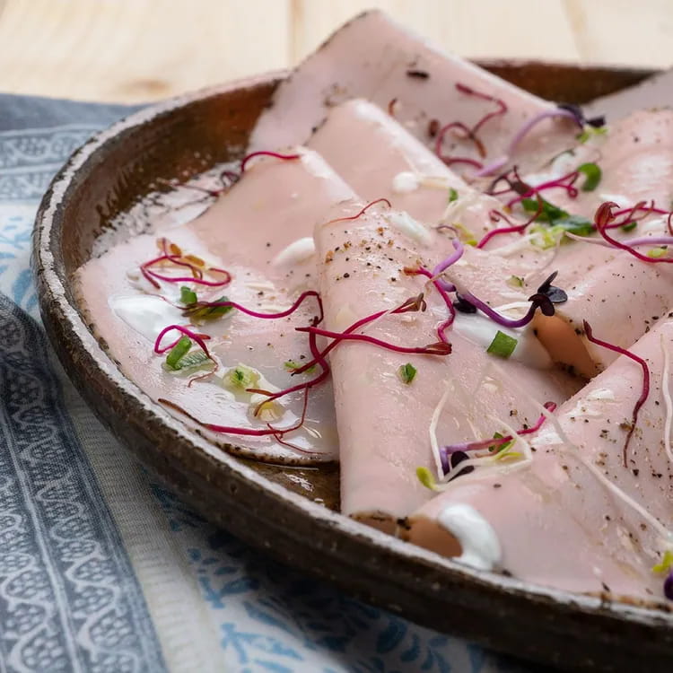 Carpaccio leggero con salsa al basilico e scaglie di Grana