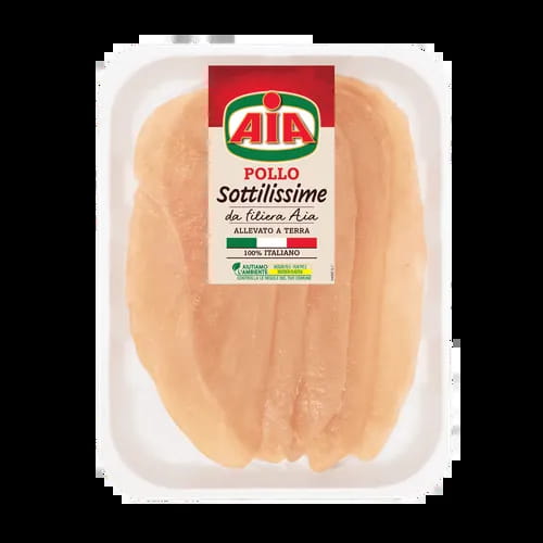 Adagiate le fettine di petto di pollo su un piano da lavoro e farcite ciascuna fettina con una fetta di pancetta AIA, un pizzico si sale e una fettina di mozzarella. Arrotolate la fettina di petto di pollo su se stessa così da creare un involtino che fermerete con uno stuzzicadenti. Ripetete l’operazione per tutte le fettine di petto di pollo.