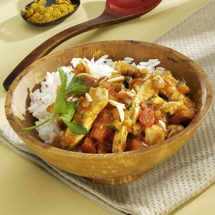 Il pollo alla curcuma è una valida alternativa ad un più classico petto di pollo preparato in padella con erbe aromatiche. Il sapore speziato del pollo alla curcuma ricorda il più famoso pollo al curry e come quest’ultimo, può essere accompagnato da un buon riso basmati.